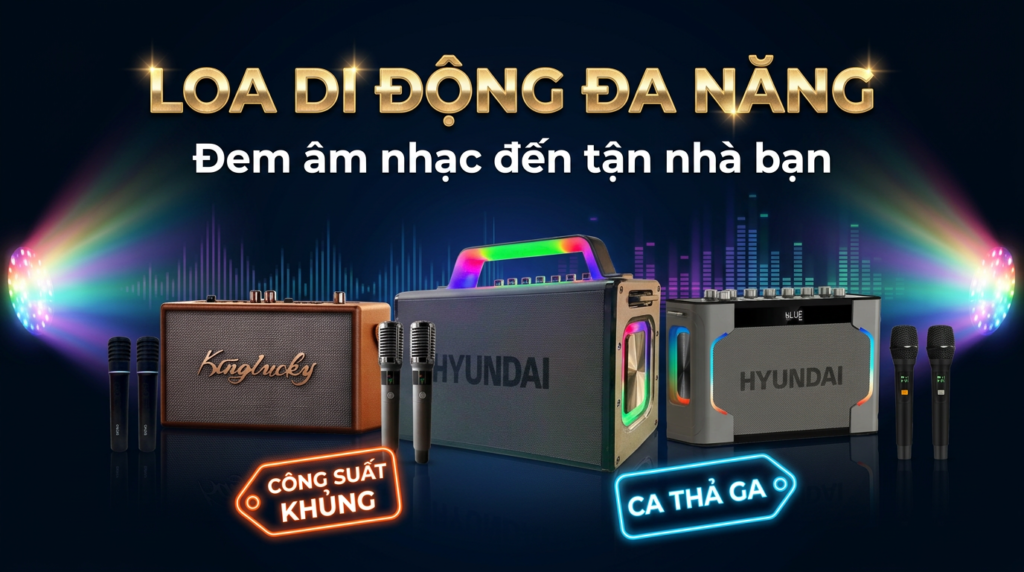 LOA KARAOXE XÁCH TAY HD010 CÔNG SUẤT 120W – KÈM 2 MICRO