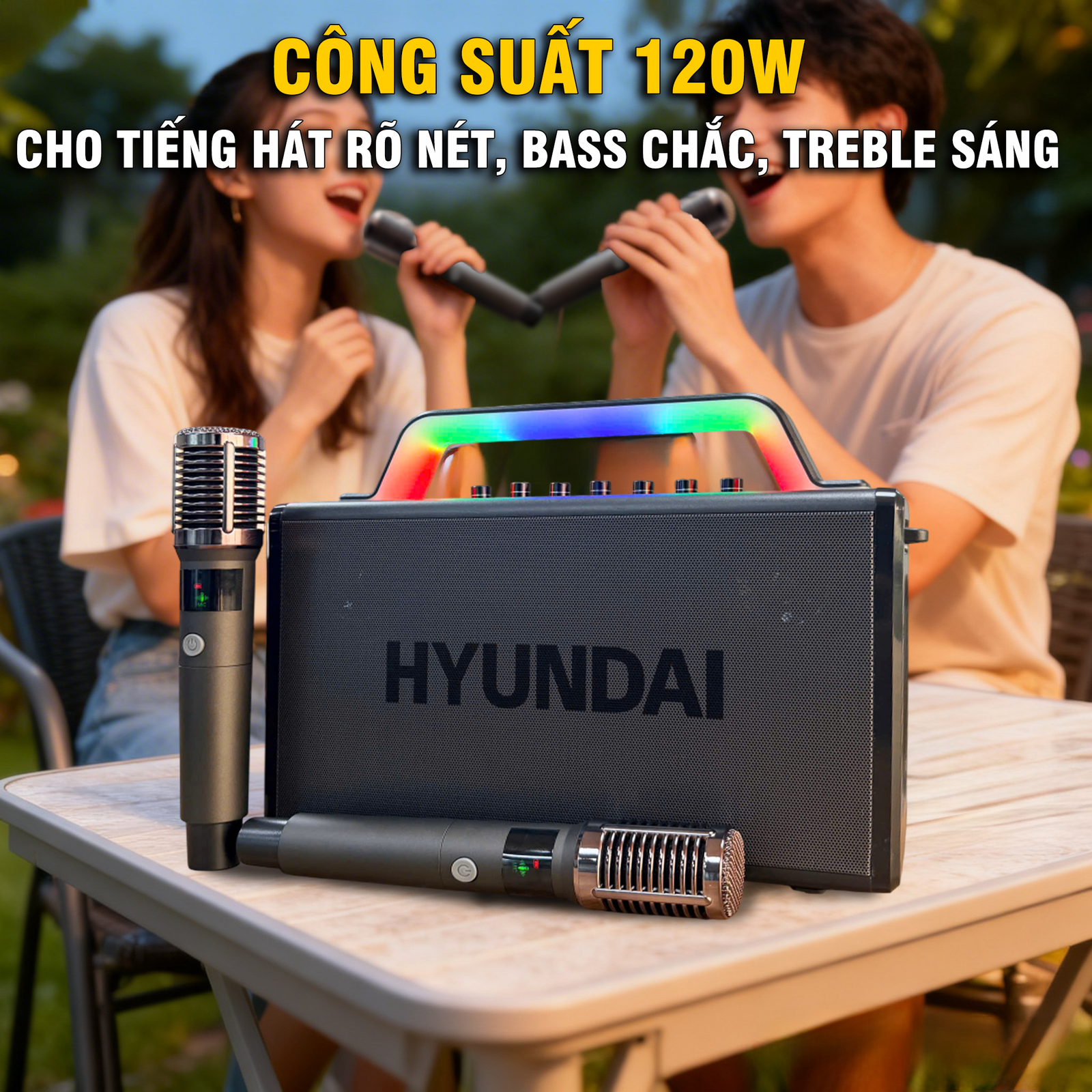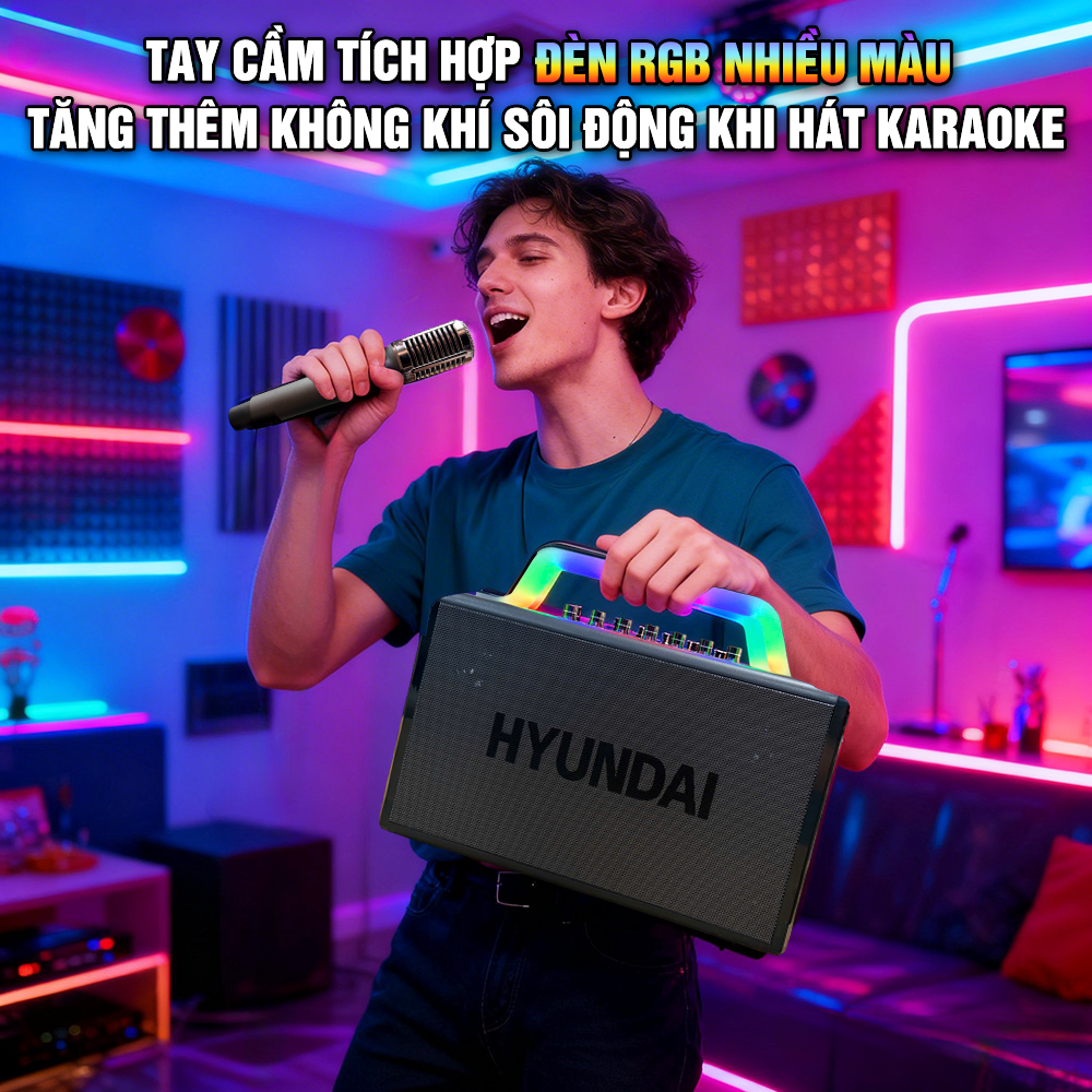 ▪ Màng loa cộng hưởng (Bass thụ động) x2 - Mic Đi Kèm: Mic sạc không dây 2.4 GHz