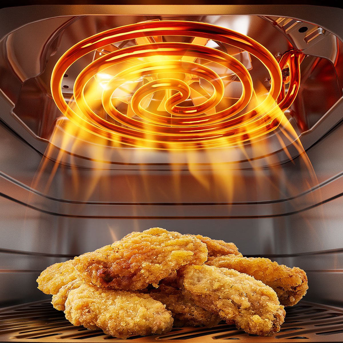 - Công nghệ làm nóng điện trở nhiệt hoạt động với công suất mạnh 1600W giúp thực phẩm chín nhanh, tiết kiệm thời gian.