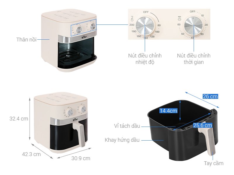 • Hỗ trợ nhiều chức năng như chiên, nướng, rã đông, sấy khô và làm bánh.